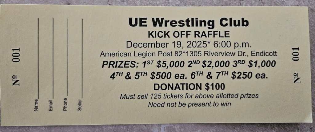 Please join us for UE Wrestling Club’s annual kick-off party, Friday December 19th, 2025 6pm at the American Legion Post 82 next to UEHS.